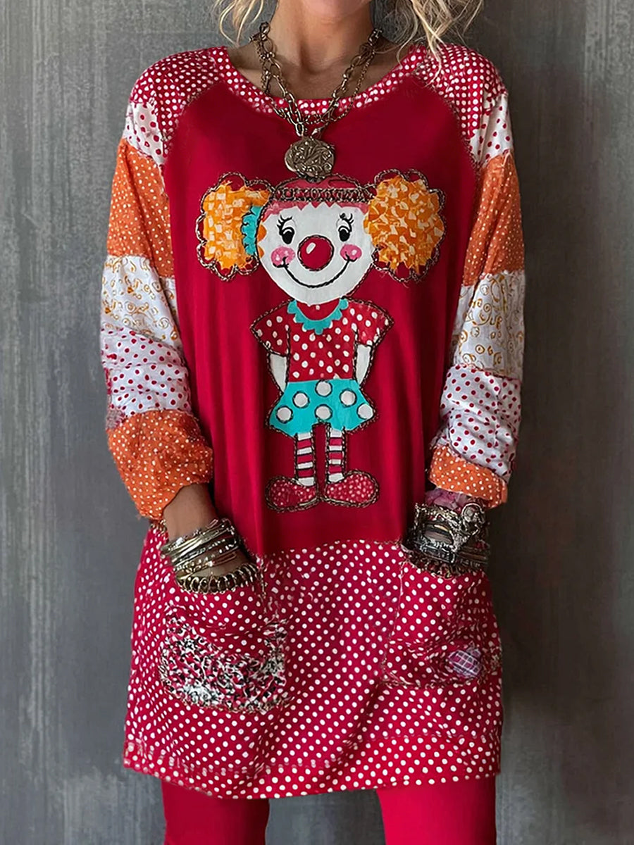 Damen-Kölner Karnevals druck Lässiges Langarm-Oberteil in mittlerer Länge