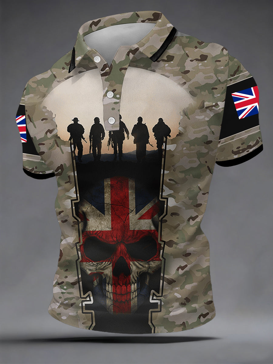 Men's British Veteran Silhouette Camouflage Print Casual Polo