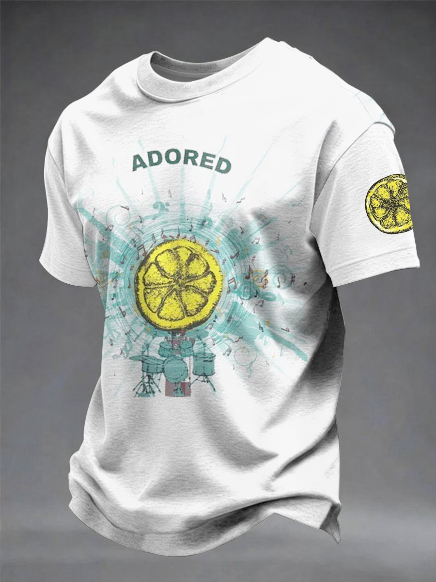 Men's Lemon Roses Music Lover Printed short sleeves t-shirt