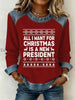 Women's All I Want For Christmas Is A New President Denim Patchwork Waffle Top