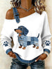 Women's Lovely Dachshund Pattern Denim Patchwork Top